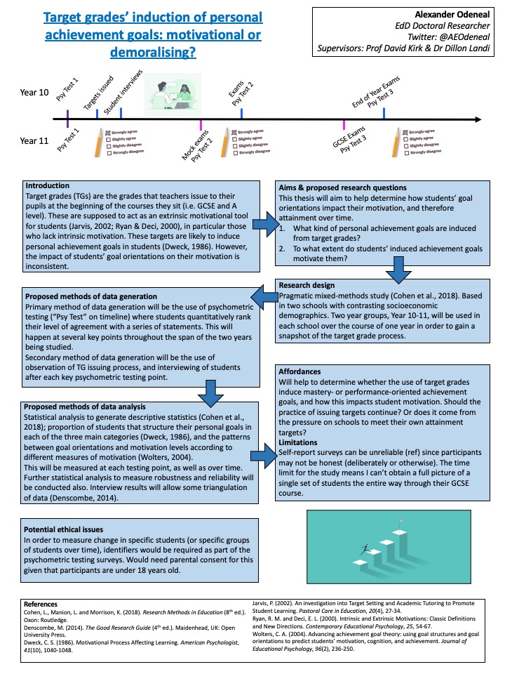In this post, I upload the poster I’ve ‘presented’ as part of the proposal for my EdD thesis. I put presented in quotes because it wasn’t a traditional presentation; since most of my course is part-time (since we are mostly teachers or other education professionals full-time), we sent our posters and a voiceover recording to each other for feedback.